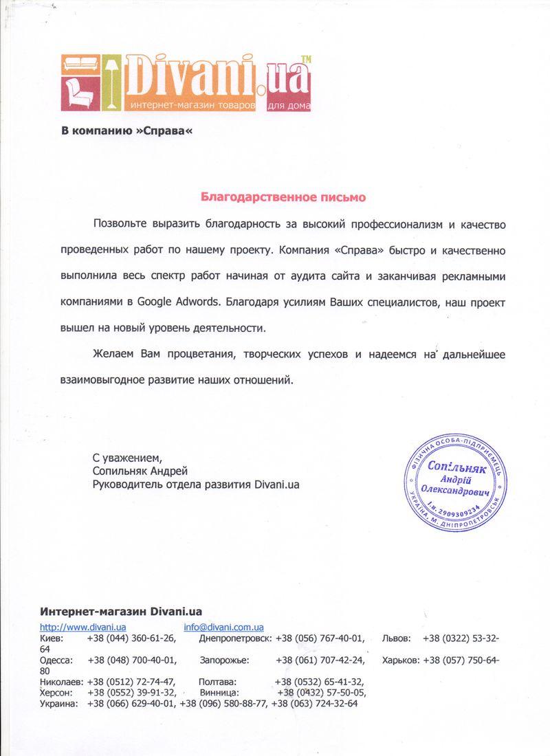 Позвольте выразить благодарность за высокий профессионализм и качество проведенных работ по нашему проекту. Компания «Справа» быстро и качественно выполнила весь спектр работ начиная от аудита сайта и заканчивая рекламными компаниями в Google Adwords. Благодаря усилиям Ваших специалистов, наш проект вышел на новый уровень деятельности